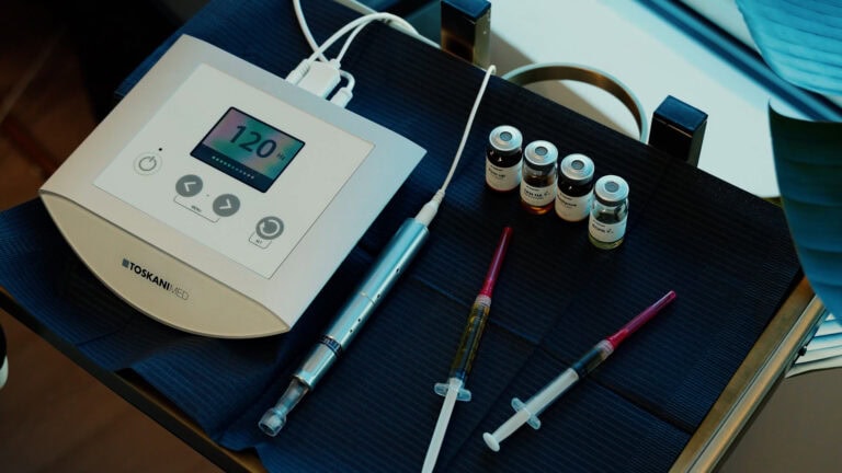 The microneedling device creates small punctures in the skin, which triggers the body’s natural healing process and boosts collagen and elastin production, leading to smoother, firmer skin.